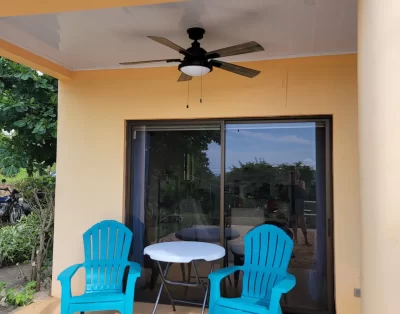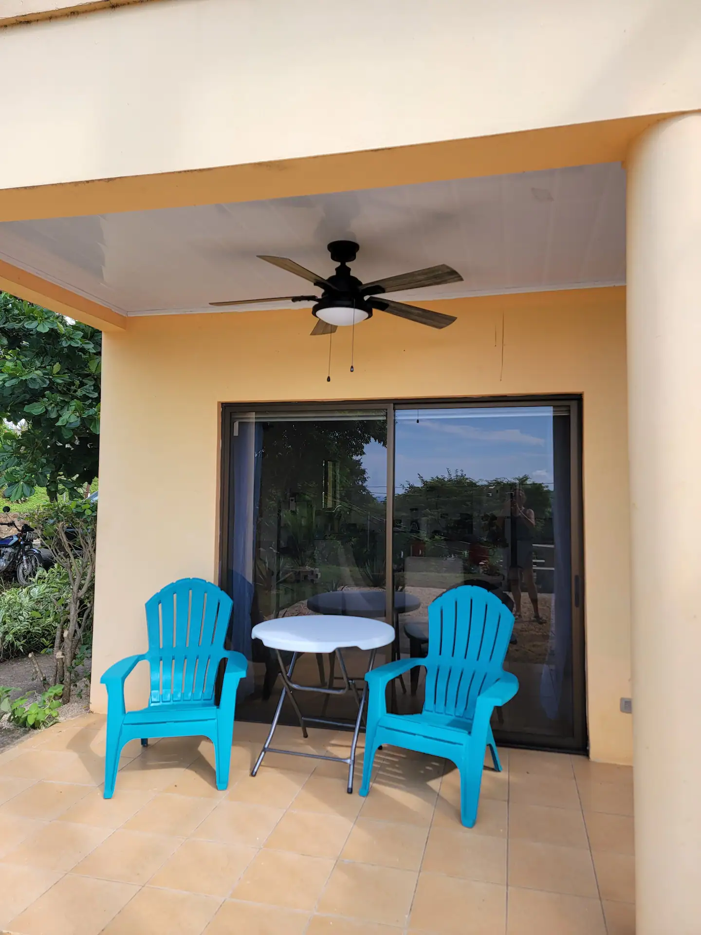 3 air conditioning units and floor fans in both bedrooms. Ceiling fan in living room. 2 fans on patio.